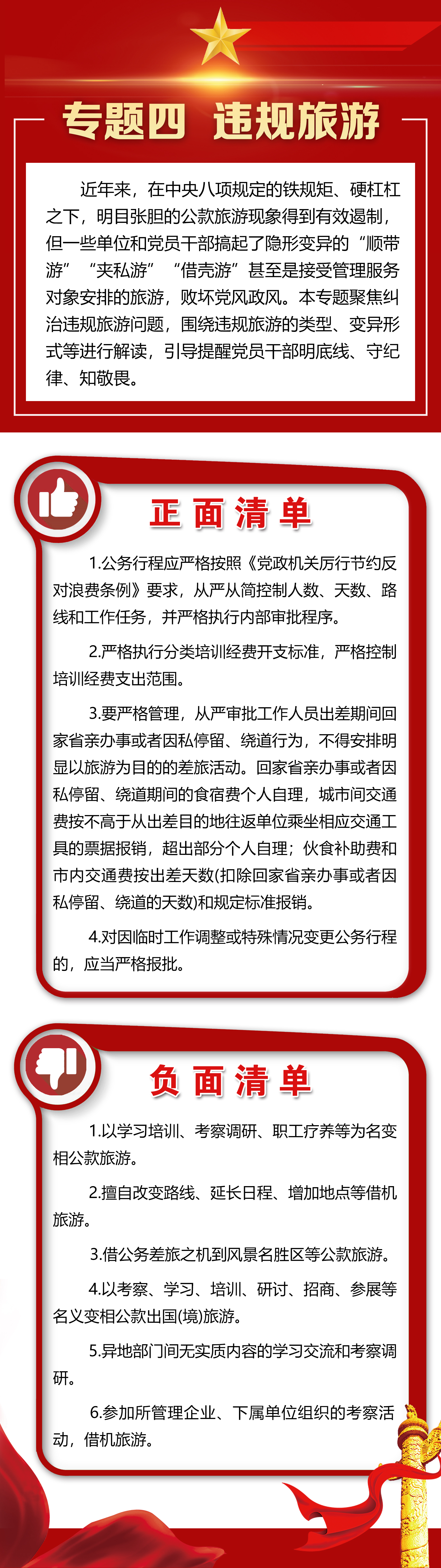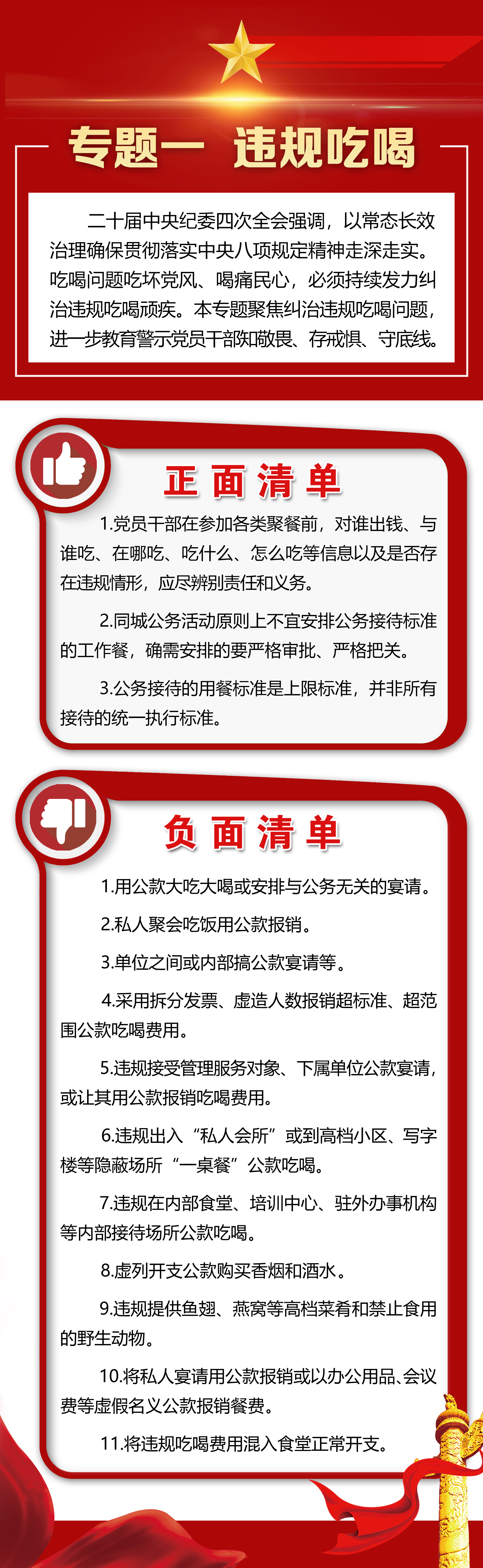 为持续释放作风建设全面从严、一严到底的强烈信号,进一步帮助八院广大党员干部深入理解和把握中央八项规定精神以及相关具体要求。八院纪委立足贴近实际、务实管用的原则组织廉洁文化周活动,开展专题宣传和教育,聚焦近年来多发易发的“四风”问题,从《贯彻落实中央八项规定精神正负面清单》中摘录五个专题,为党员干部提供“标尺”、划清“红线”,明确可为不可为,切实做到心有所畏、言有所戒、行有所止。